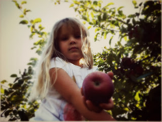 It really is a beautiful tradition. Every year Christopher hoists the kids up on his shoulders, every year I think "this is going to be the year that big dummy puts his back out!" He always just shakes his head at me, "As long as I can lift them, I'm going to!" Up they go, nearly to the top of that apple tree, trying to get the most perfect apple. I have to admit, it is beautiful, and it will cause a tear to fall from my eye when they all become too big to be hoisted up. Poor Gracie is now too big, and I see her looking longingly at the smaller kids being hoisted up on Daddy's shoulders.